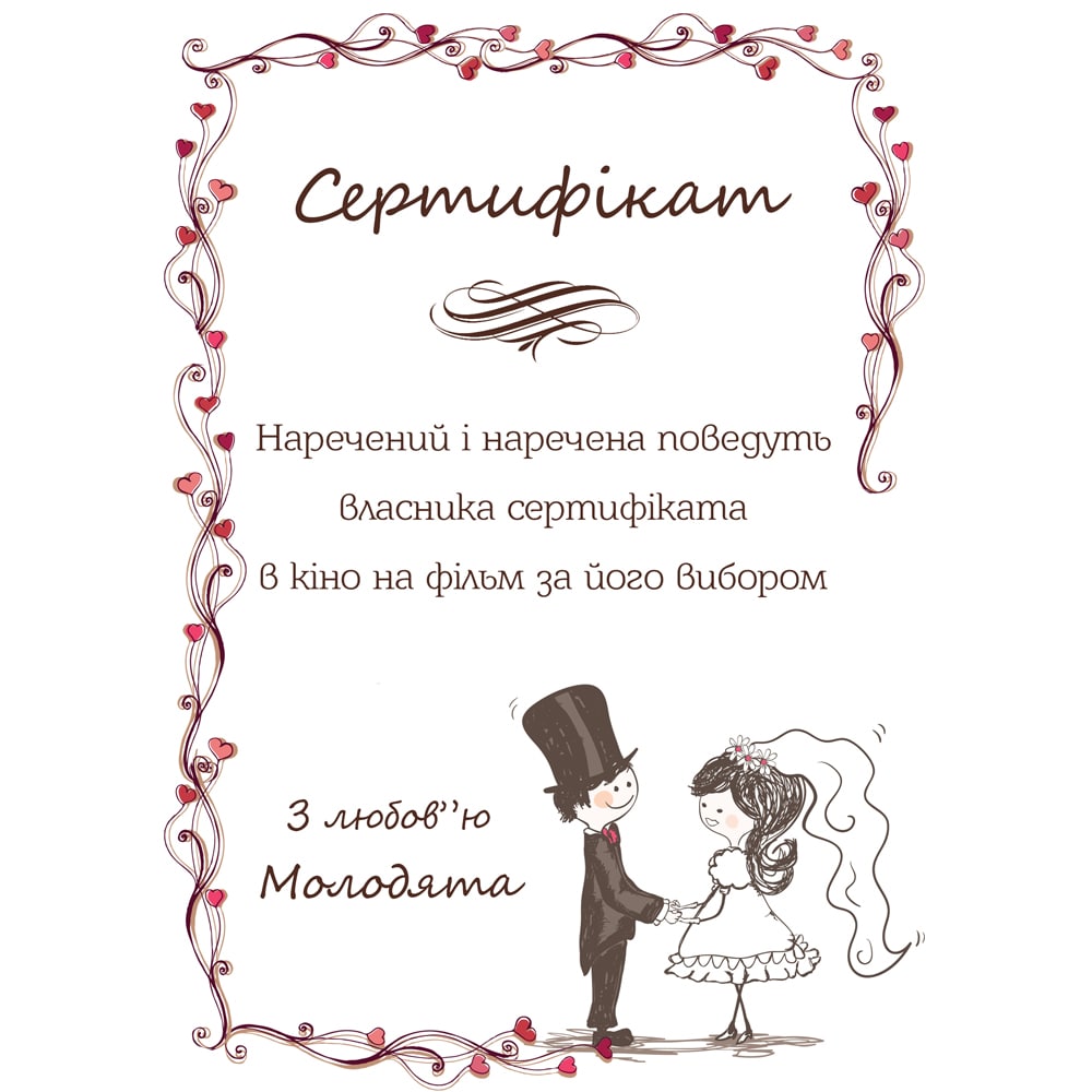 Жартівливі сертифікати використовуються як нагорода чи приз на весільних конкурсах.