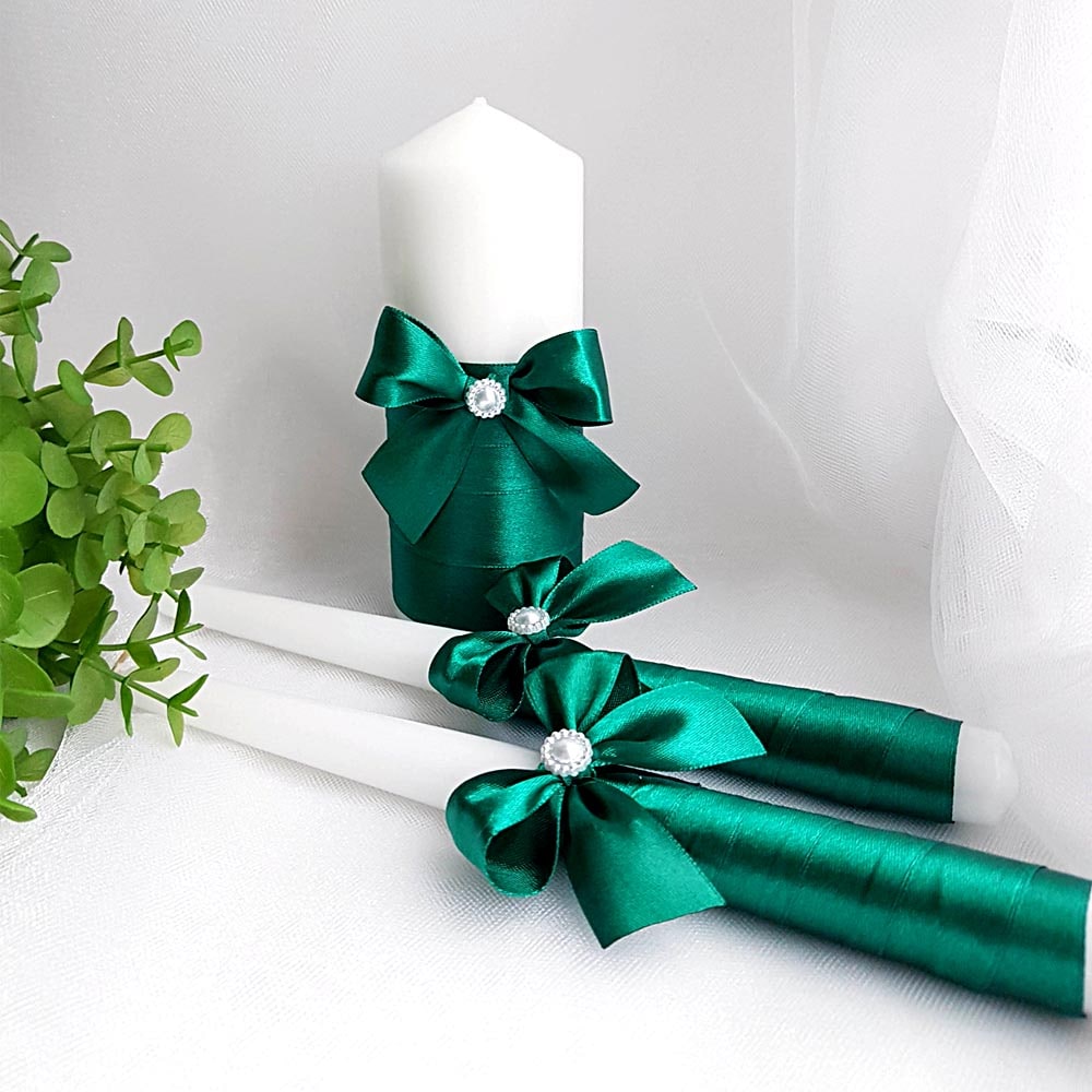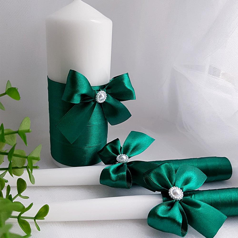 Набір свічок ручної роботи оформлені в одному стилі.