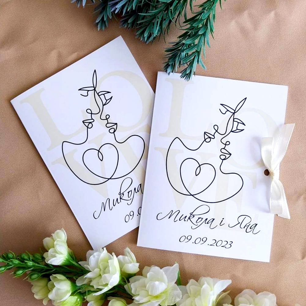 Запрошення йде з не зав'язаною стрічкою, опція зав'язування стрічки коштує 1,5 грн. - якщо потрібно, вкажіть її в коментарях до замовлення