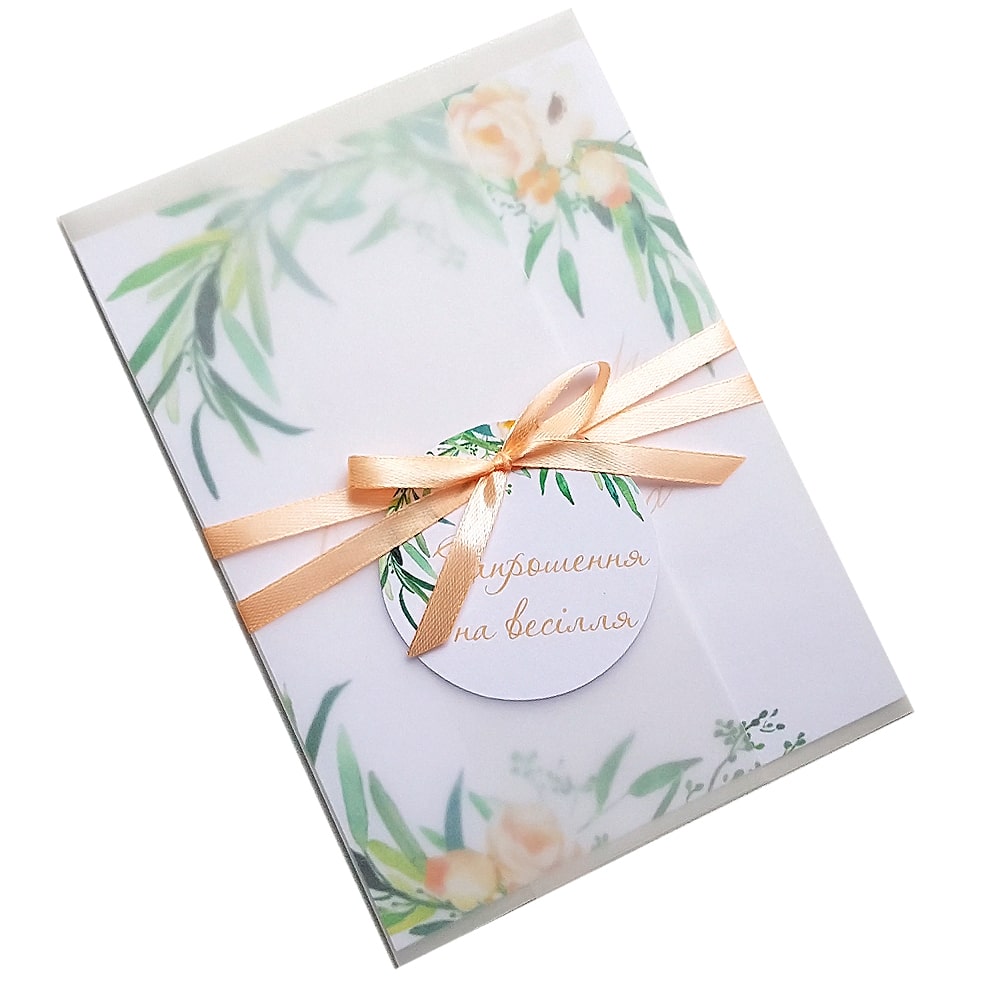 Запрошення ручної роботи з обгорткою із напівпрозорої кальки.