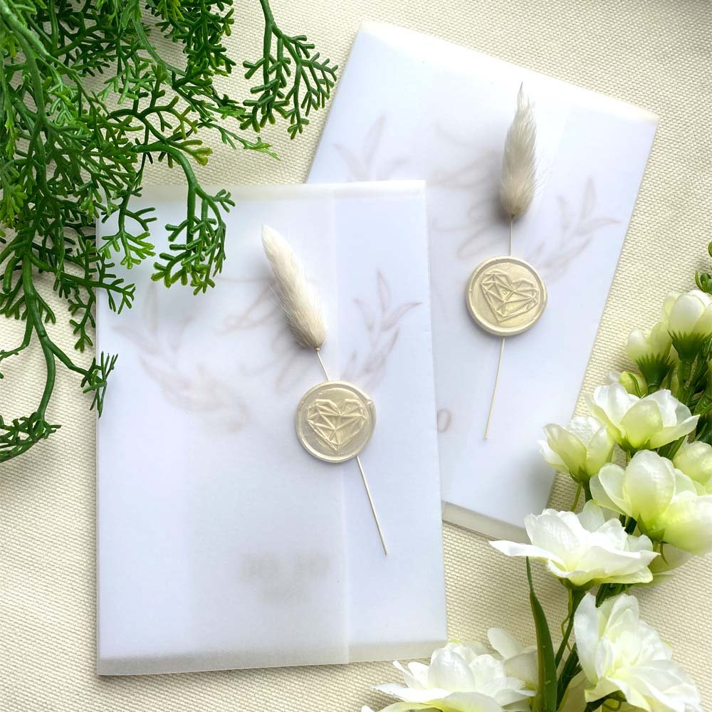Запрошення ручної роботи з обкладинкою із напівпрозорої кальки.